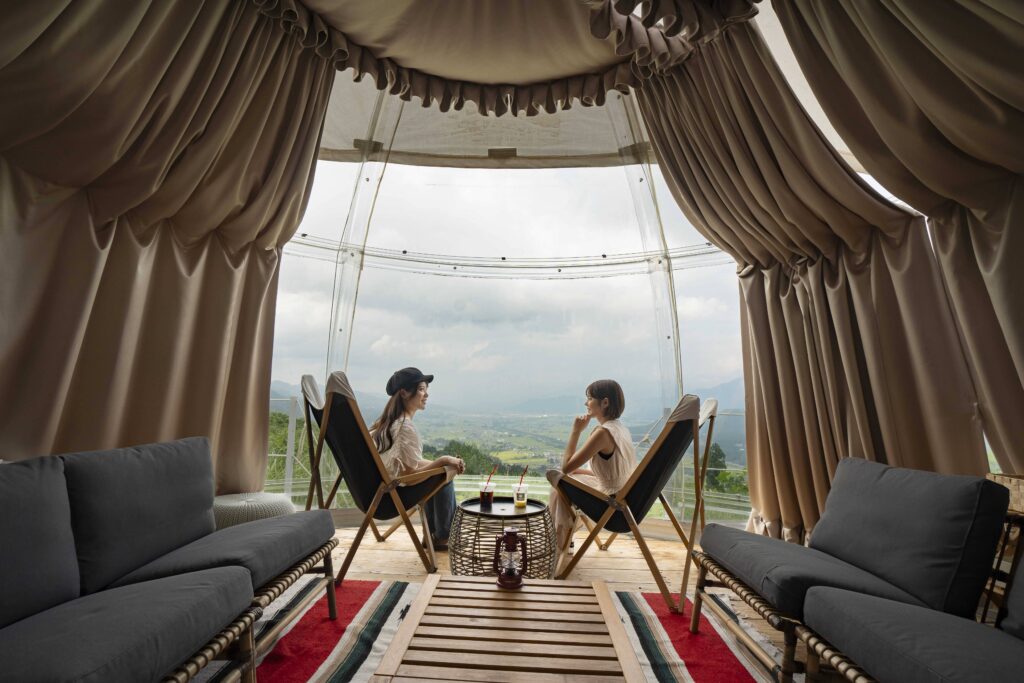 リゾートホテル「NASPAニューオータニ」に併設された「CAMP GARDEN」では、春から秋にかけて、グランピングや手ぶらキャンプ、フリーサイト、RVパークなど多彩なスタイルで自然を満喫できる。全天候型アクティビティ施設「ASOBI GARDEN」では、メガバギークルージングや9D VRなど、思い思いに楽しめる遊びが揃う。BBQや焚き火、温泉大浴場もあり、遊びもくつろぎも叶うのが魅力。
