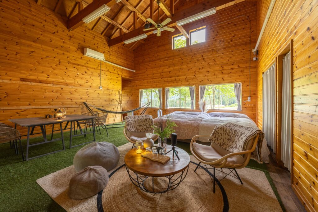 リゾートホテル「NASPAニューオータニ」に併設された「CAMP GARDEN」では、春から秋にかけて、グランピングや手ぶらキャンプ、フリーサイト、RVパークなど多彩なスタイルで自然を満喫できる。全天候型アクティビティ施設「ASOBI GARDEN」では、メガバギークルージングや9D VRなど、思い思いに楽しめる遊びが揃う。BBQや焚き火、温泉大浴場もあり、遊びもくつろぎも叶うのが魅力。